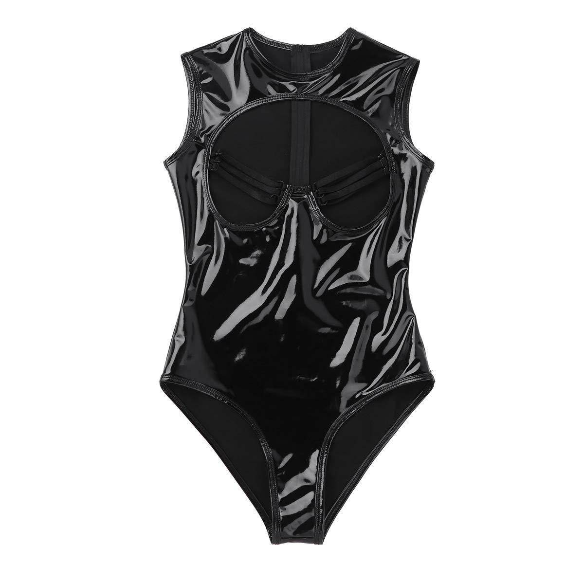 Lingerie Mirror Patent Leather Cutout Bodysuit Large Size