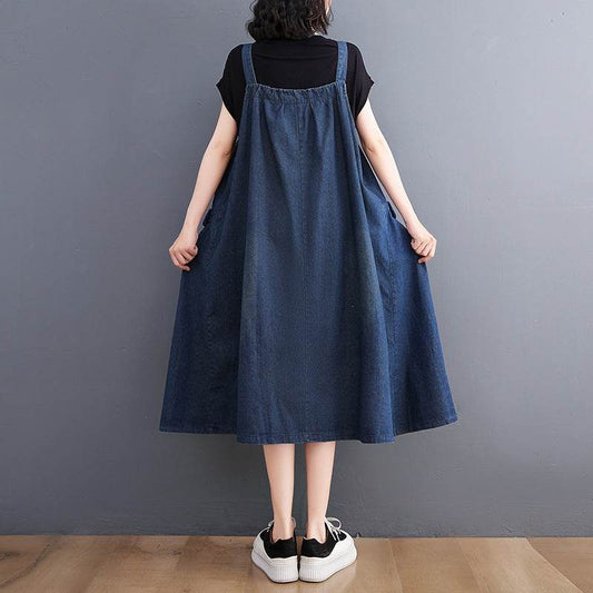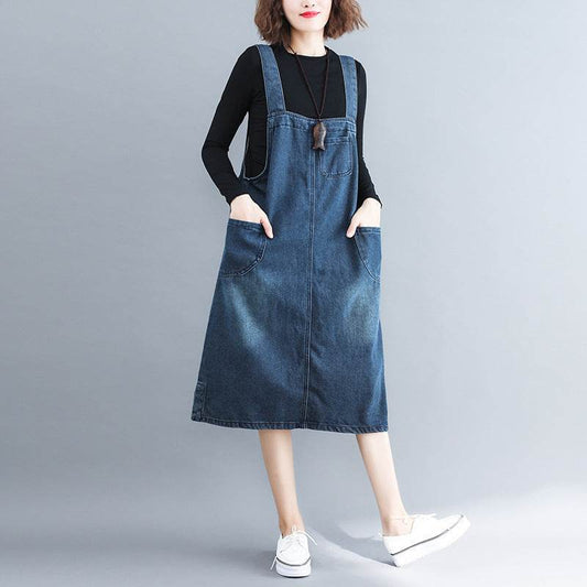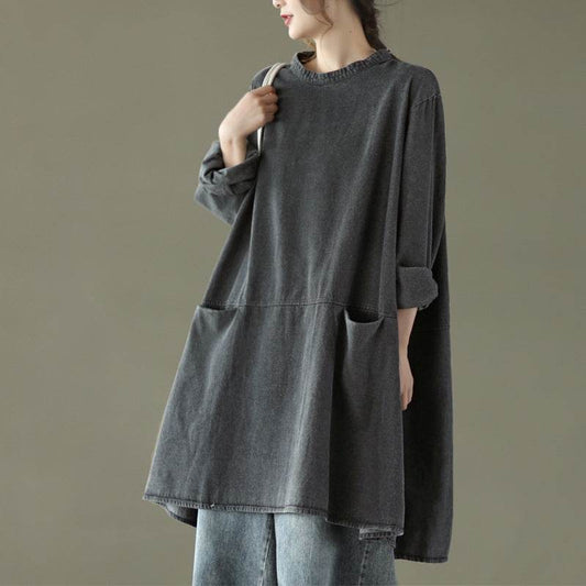 Tencel Denim Simple Plus Size Women's Long Sleeve Dress Denim Plus Size Skirt