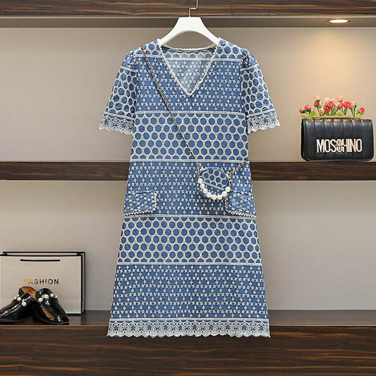 African Women's Plus Size Mother Dress Washed Denim Print African Dress