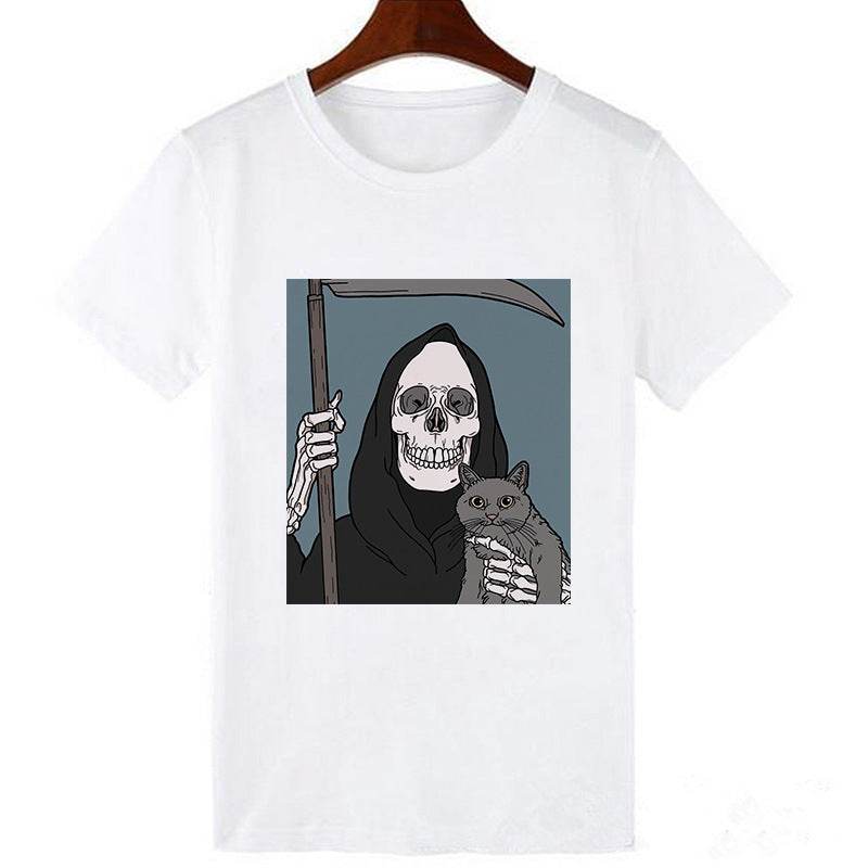 Horro Skull and Cat Femal Tshirt Top Tees kawai T-shirt
