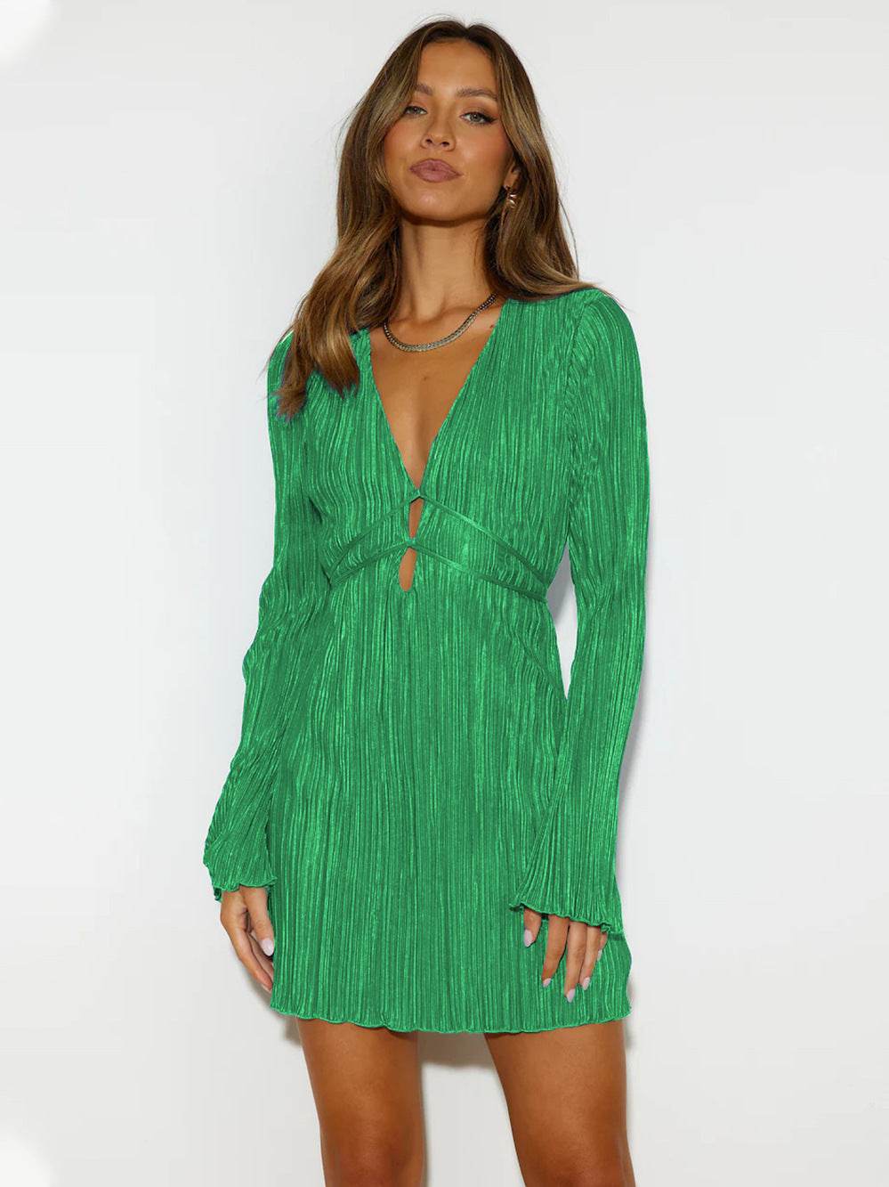 Slim Lace-up V-neck Trumpet Sleeve Dress Temperament Glitter Dresses Fashion Skirt For Womens Clothing
