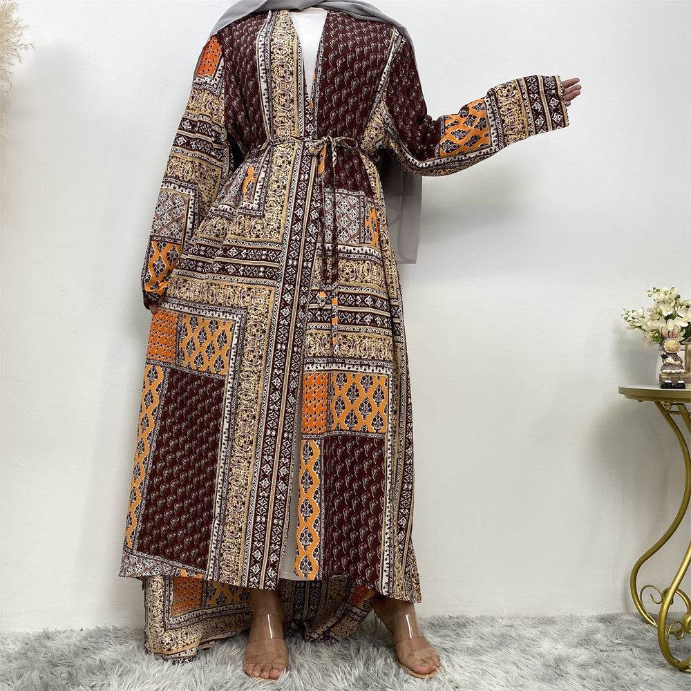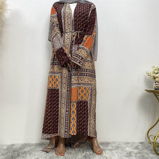 Loose Plus Size Paris Beads Retro Long Sleeve Robe
