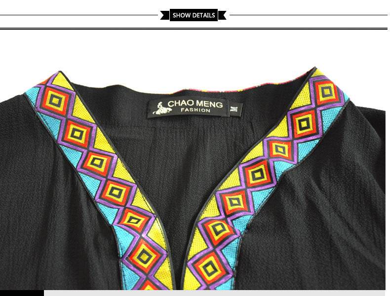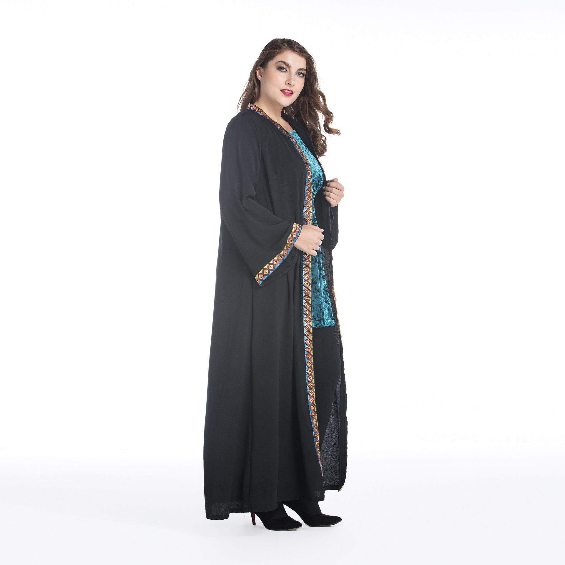 Loose Plus Size Paris Beads Retro Patchwork Long Sleeve Robe