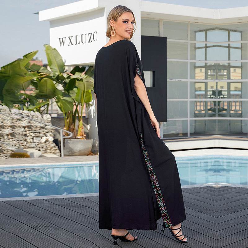 Rayon Embroidered Holiday Loose Plus Size Robe Dress - Mubimart