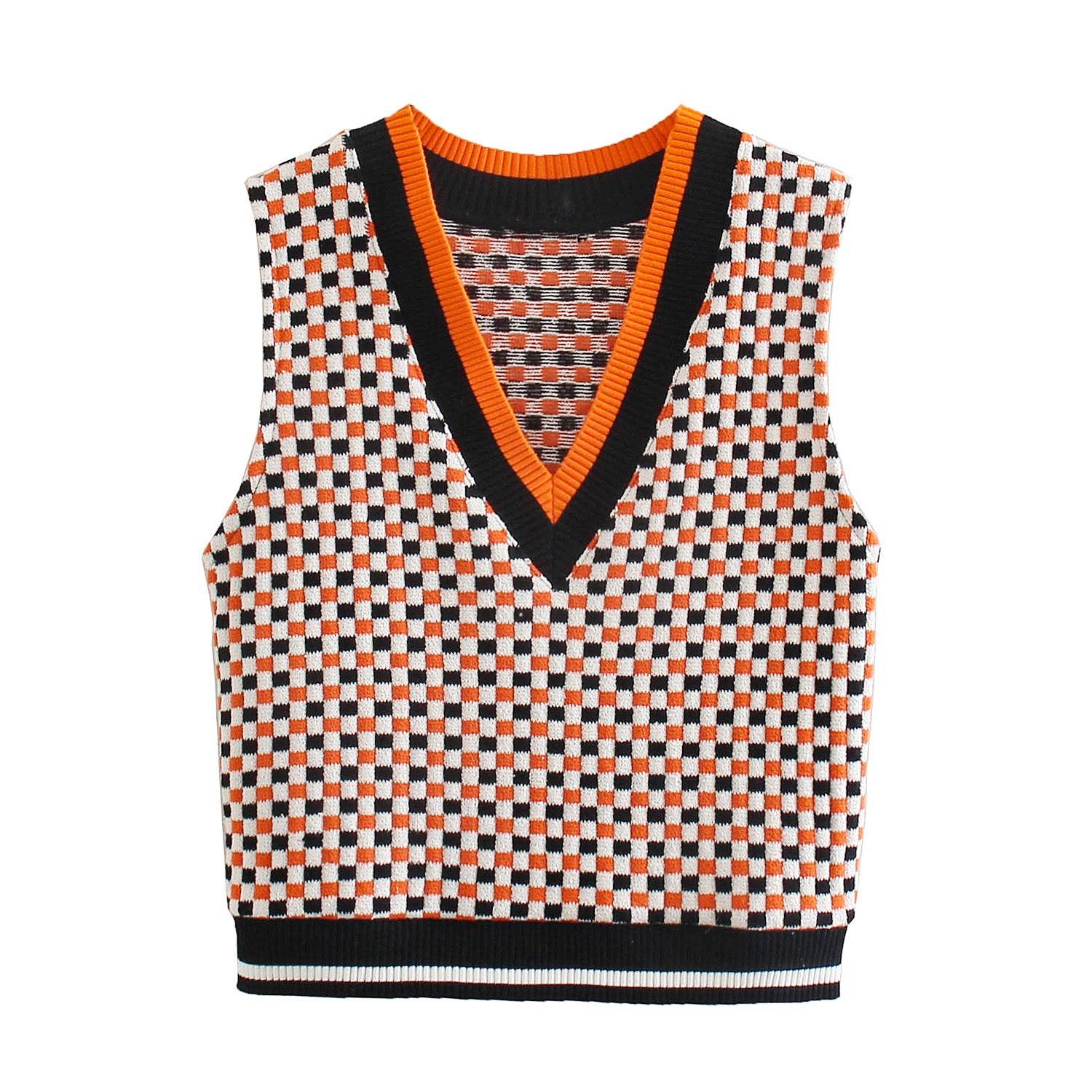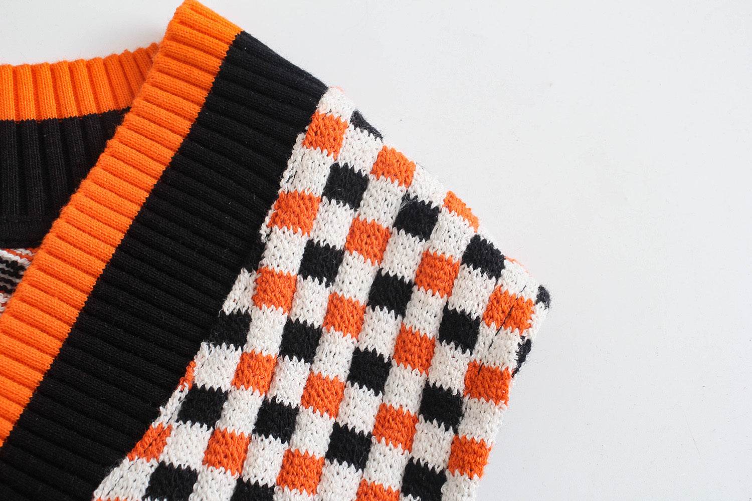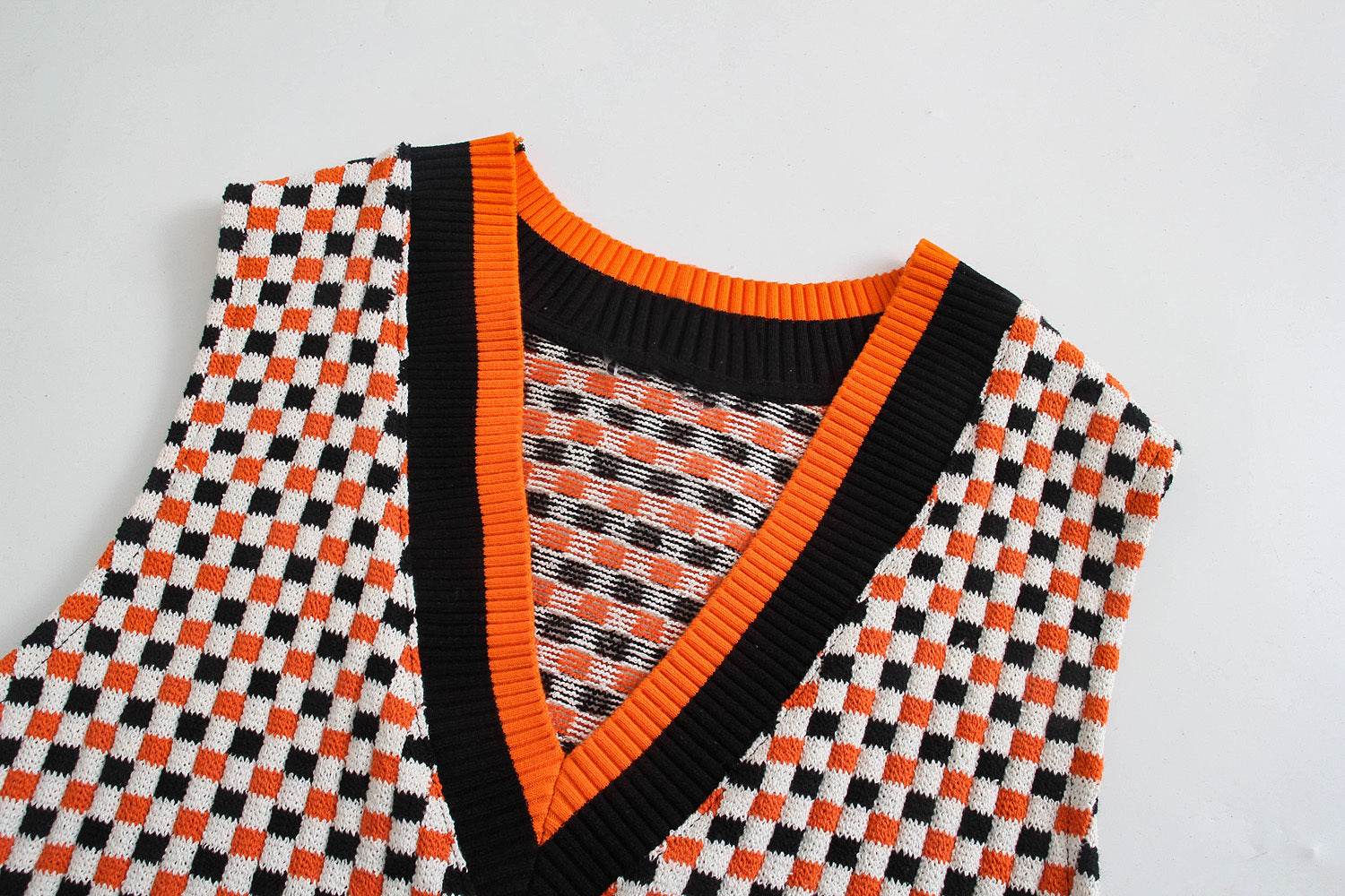 Patchwork Retro Check Vest Vest Sweater