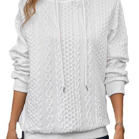 Plus Size Casual Jacquard Hooded Lace-up Long Sleeve Sweatshirt