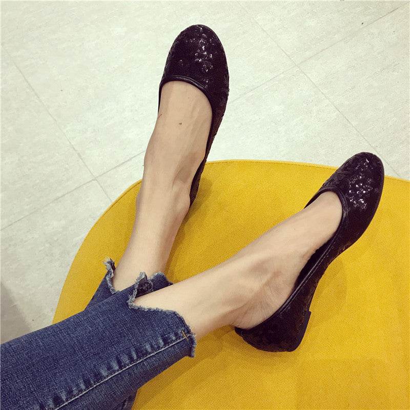 Fashion Pumps Flat Bottom Flat Heel Comfortable Sequins Shiny Pumps