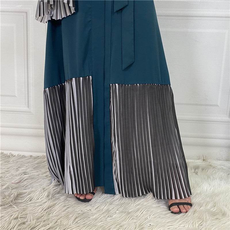 Pleated Hem Robe Women Arabian Long Cardigan