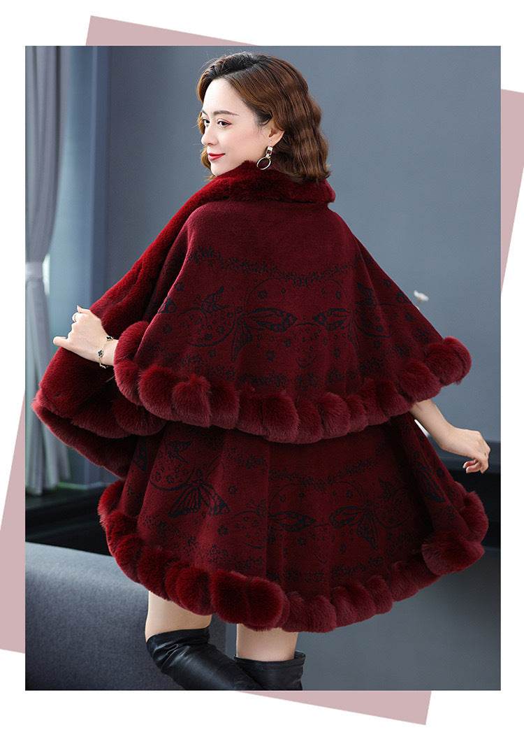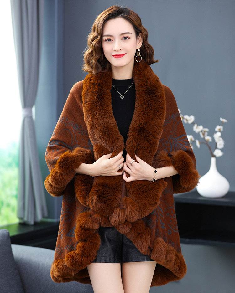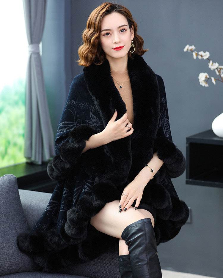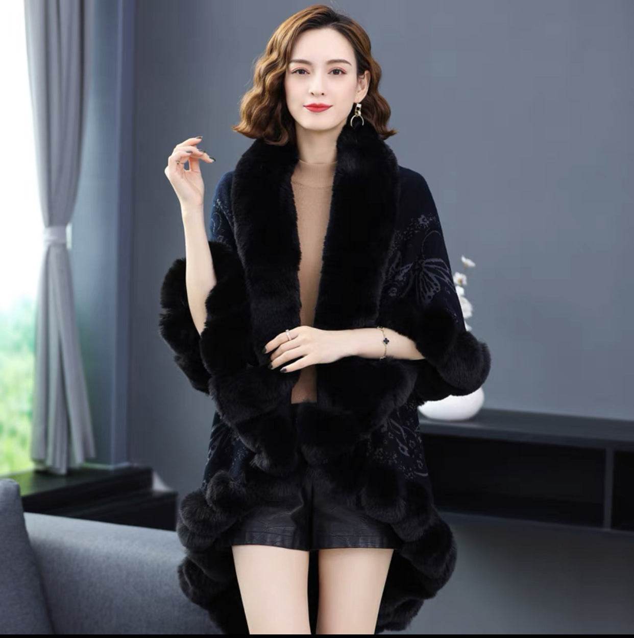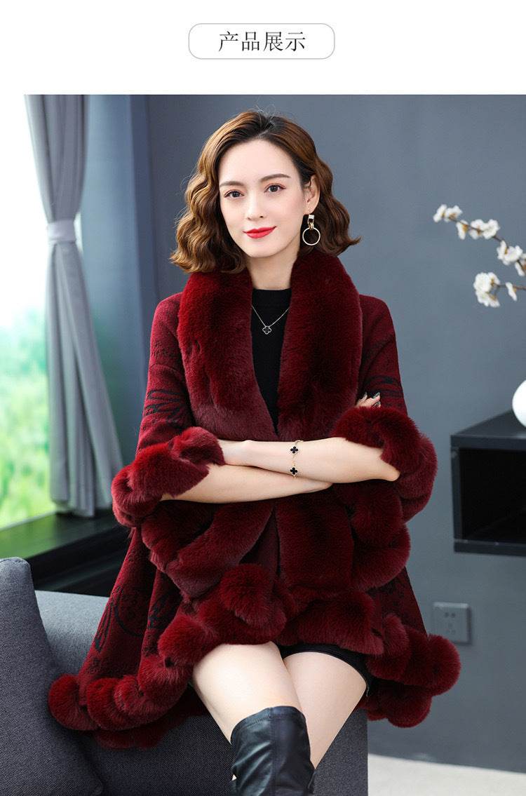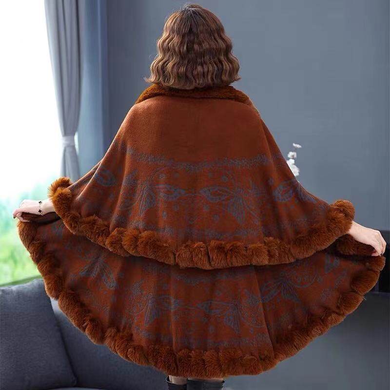 Imitation Rex Rabbit Fur Collar Shawl Cape Women's Plus Size