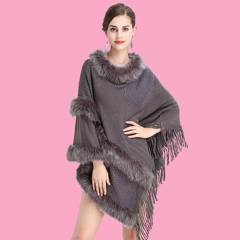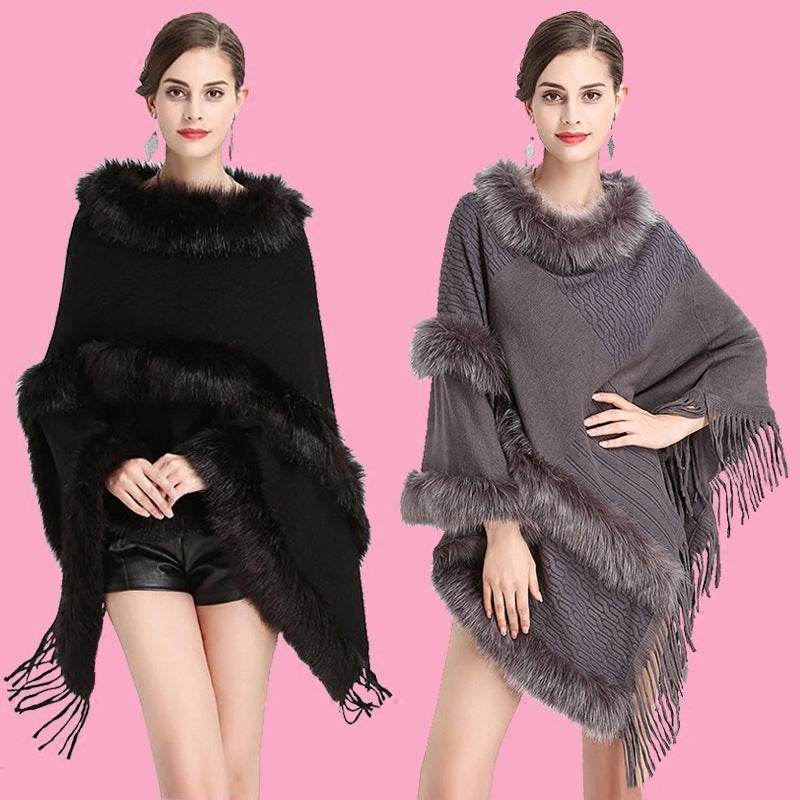 Large Size Faux Fox Fur Mid-length Cape Shawl