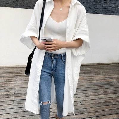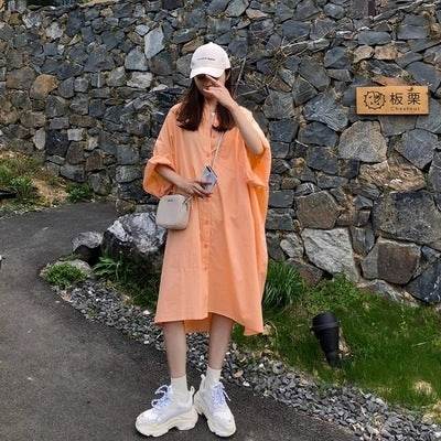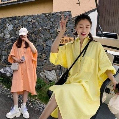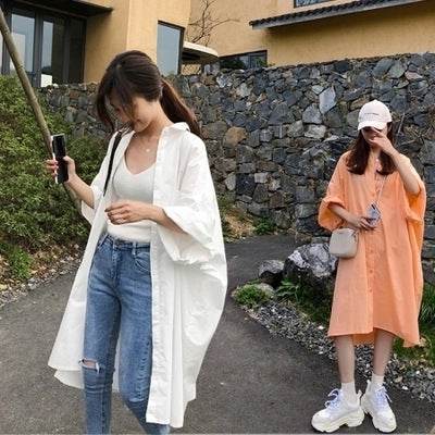 Summer Plus Size Women's Sun Protection Clothing Loose Short Sleeved Long Shirt Dress