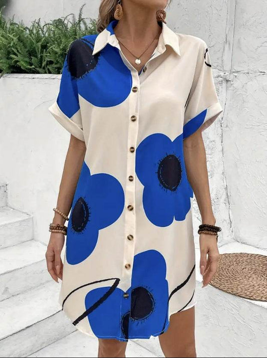 Plus Size Women's Printed Pleated Loose Shirt Dress - Mubimart