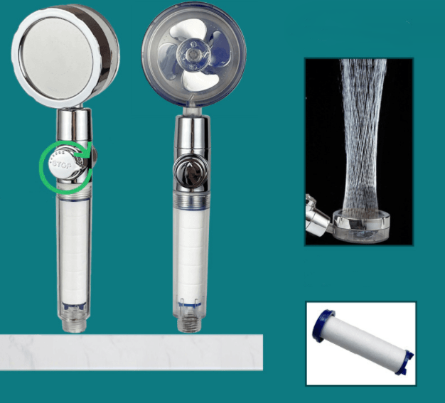 New Turbo Propeller Shower Head Water Saving High Preassure Flow 360 Degrees With Fan Extension Showerhead Rainfall With Holder
