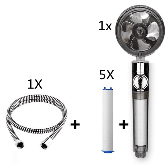 Propeller Driven Shower Head With Stop Button And Cotton Filter Turbocharged High Pressure Handheld Shower Nozzle