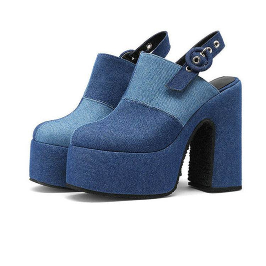 Light Blue Slingback High Heels Pointed Toe Stiletto All-match Fairy Wind Sandals