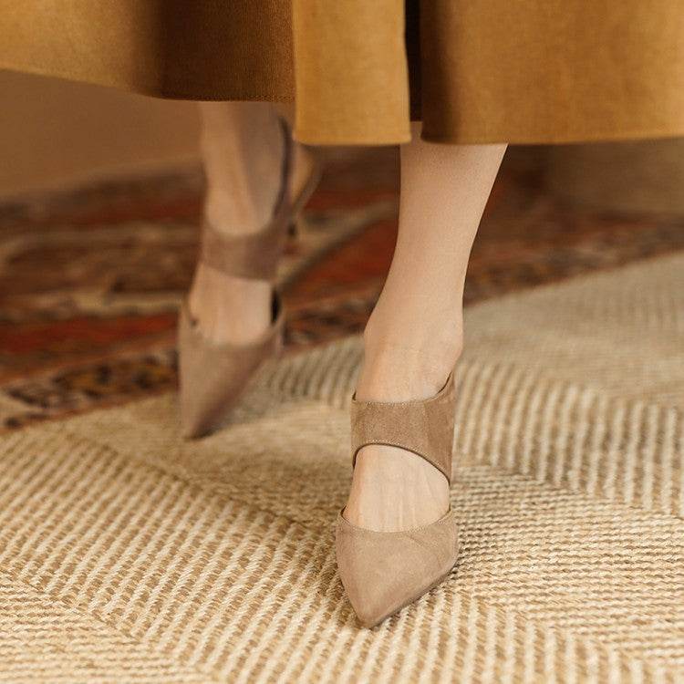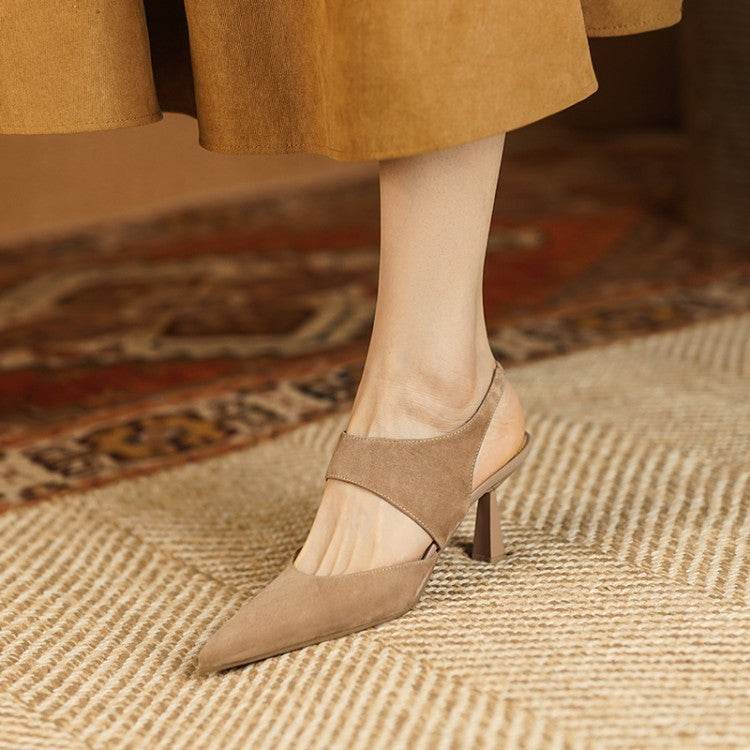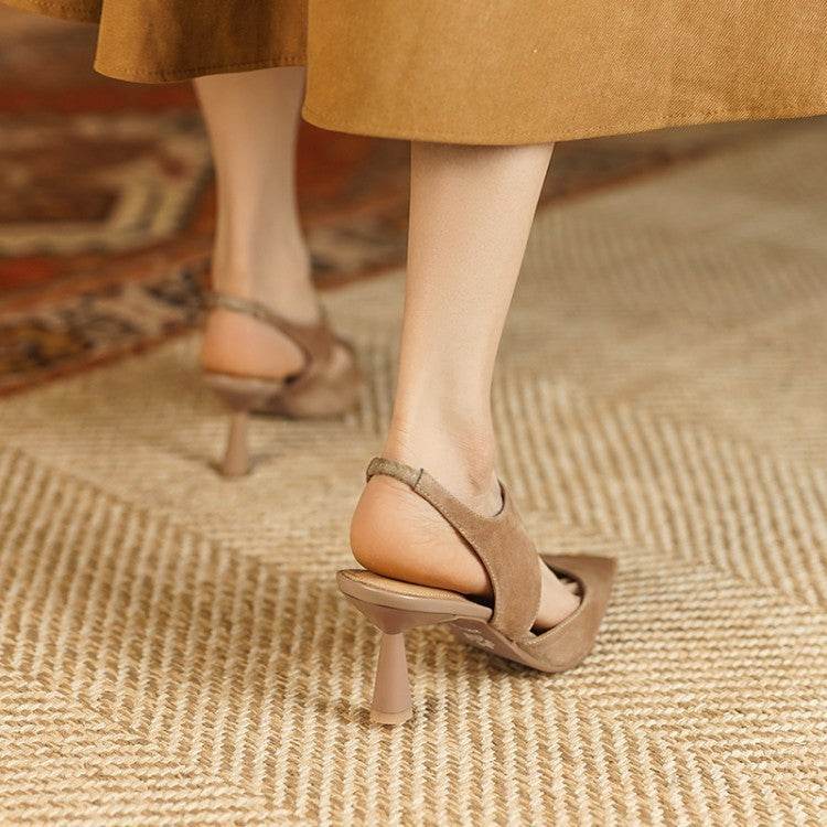 French Retro Pointed Toe Low-cut High Heels Closed Toe Slingback Sandals