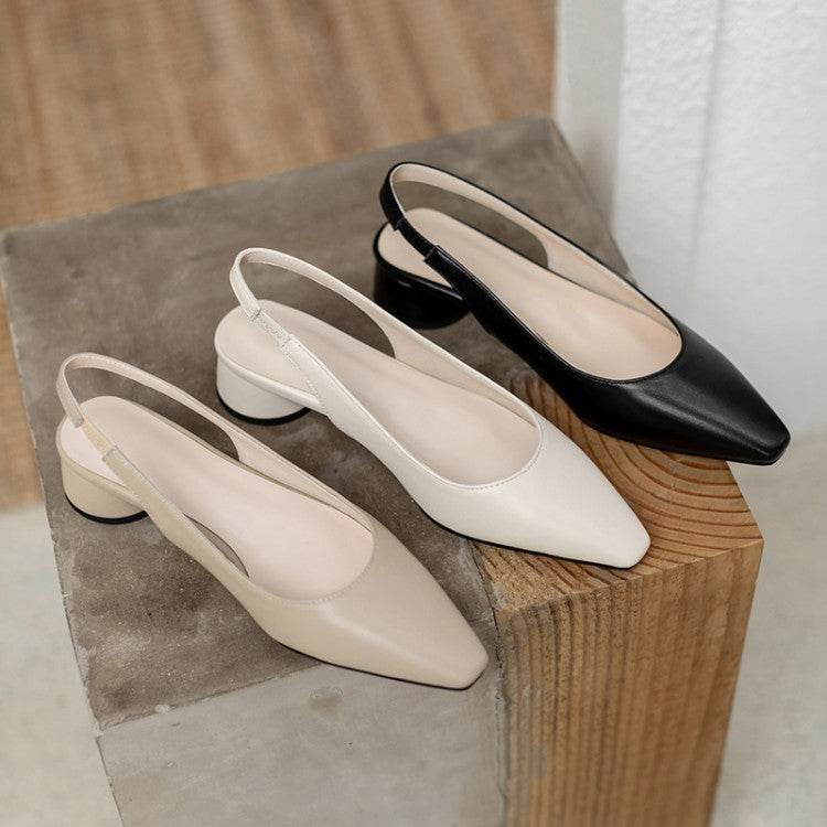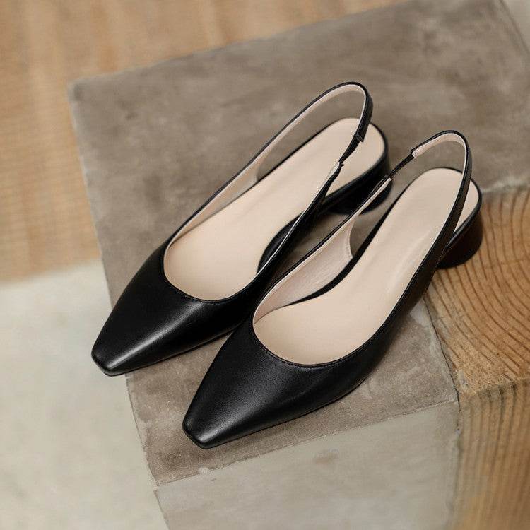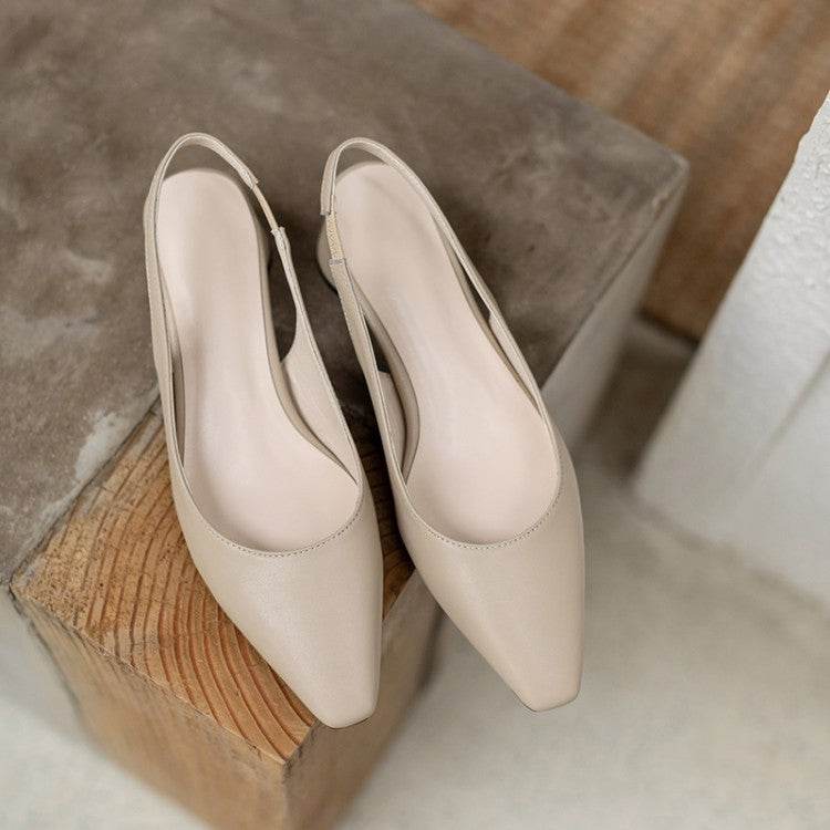 Pointed Toe Slingback Baotou Simple Low Heel Women's Shoes - Mubimart