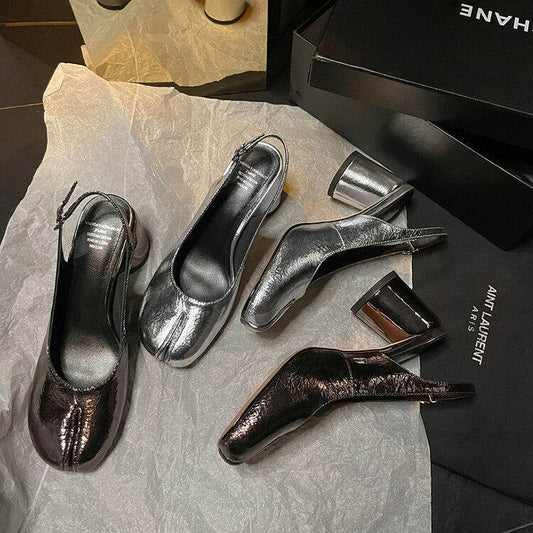 Split-toe Shoes Shallow Mouth Slingback Sandals Women's Chunky Heel Shoes