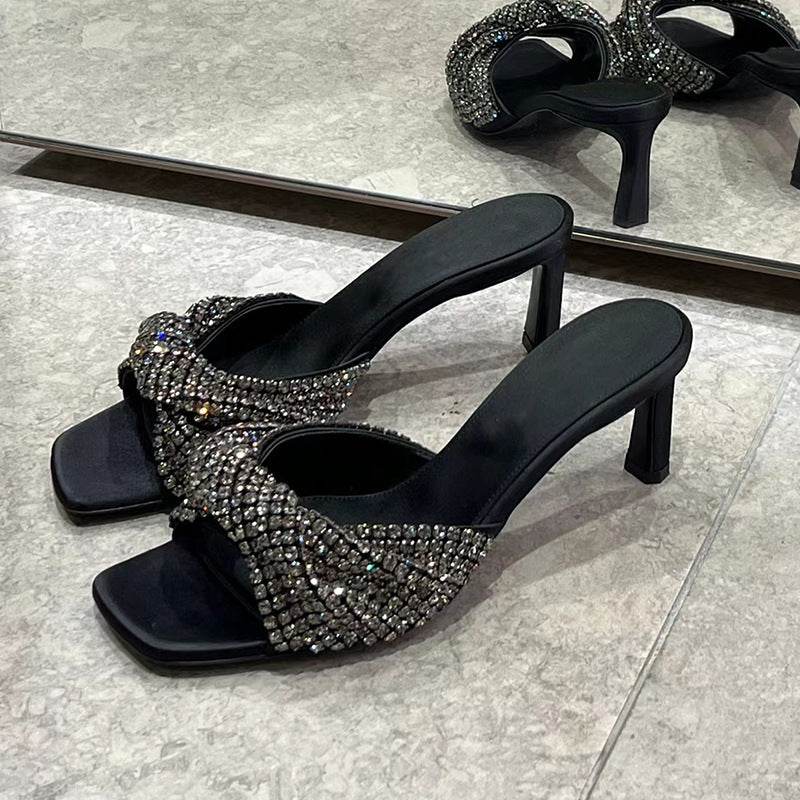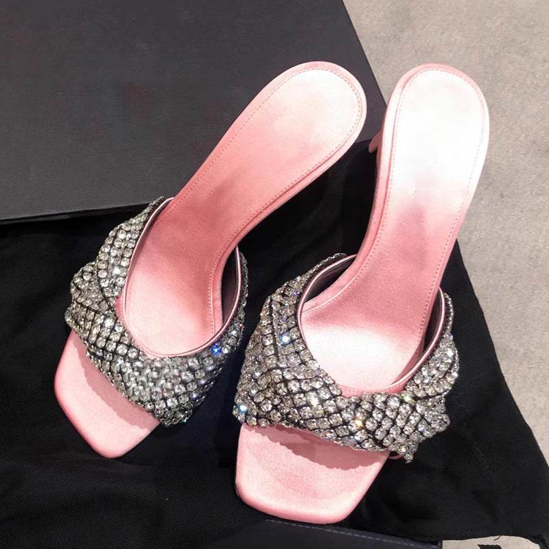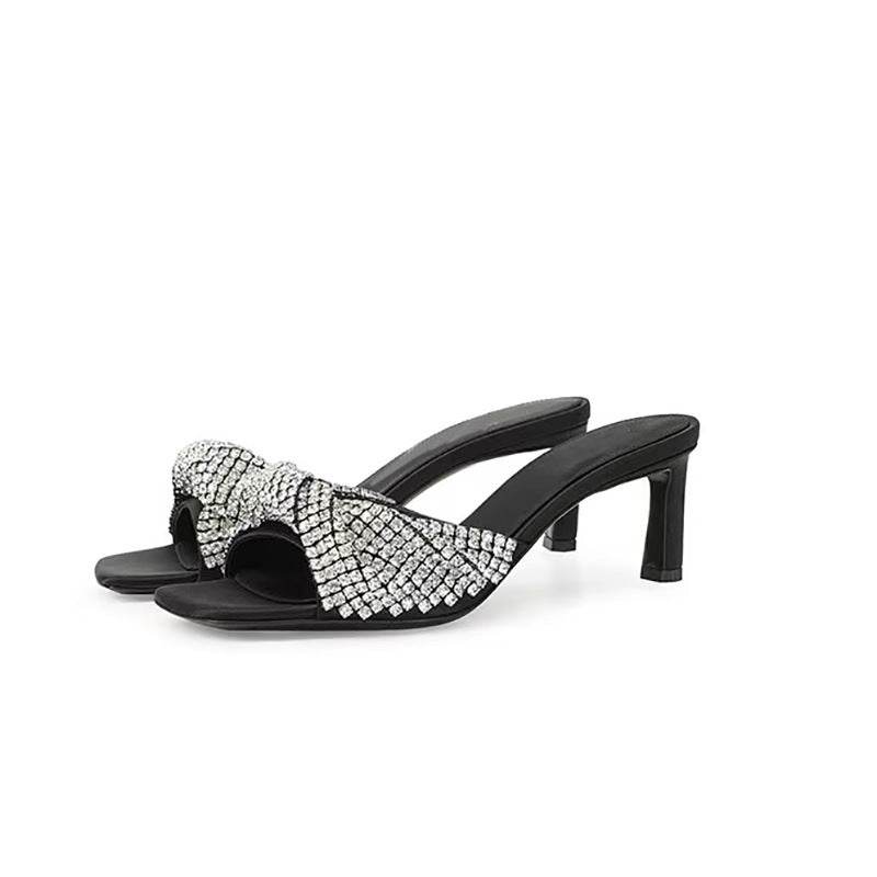 Rhinestone Bow Open Toe Stilettos Sandals Fashion All-match Sexy Roman Style Sandals