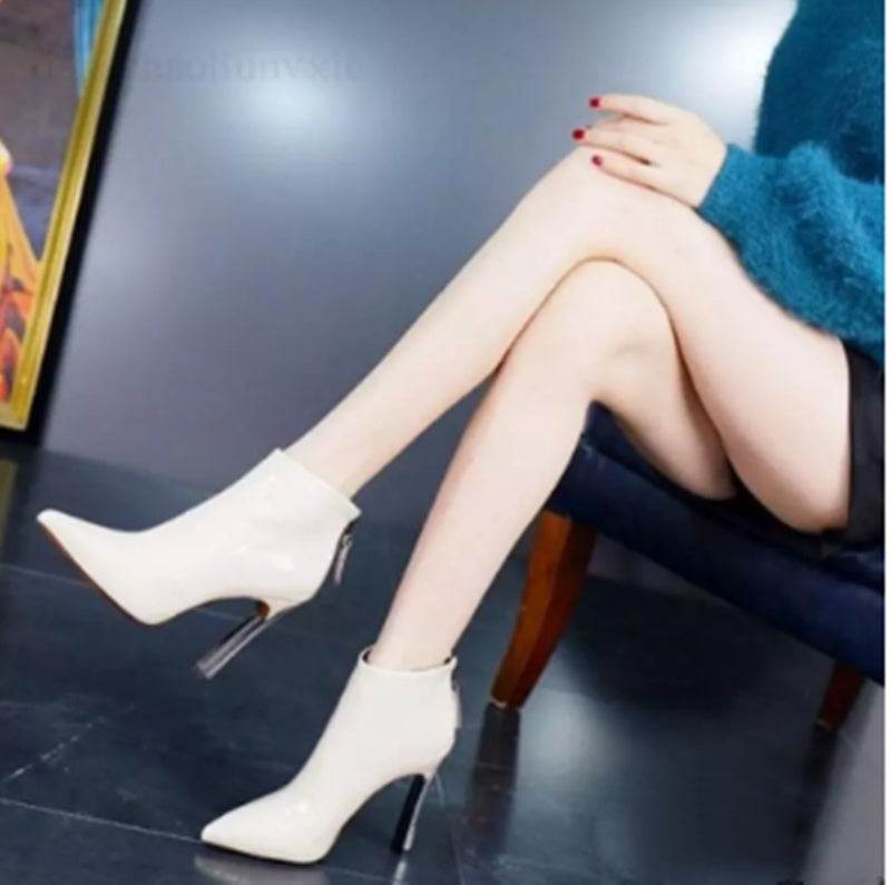 Short Boots Women's High-heeled Stilettos British Style Pointed Toe Thick-heeled High Heels