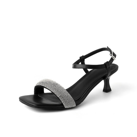 Women's New Summer Fairy Style Mid Heel Square Toe Open Toe Classy Stilettos Rhinestone Strap Women's Sandals