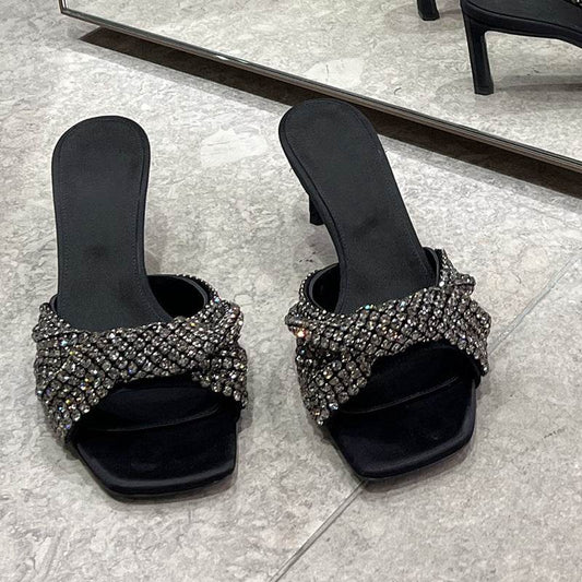 Rhinestone Bow Open Toe Stilettos Sandals Fashion All-match Sexy Roman Style Sandals