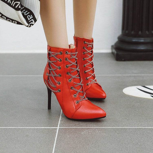 Fashion Pointed Toe Stilettos Ankle Boots Knitted Fly-woven Elastic Boots Autumn And Winter Thin-heel Luxury Pumps Woman