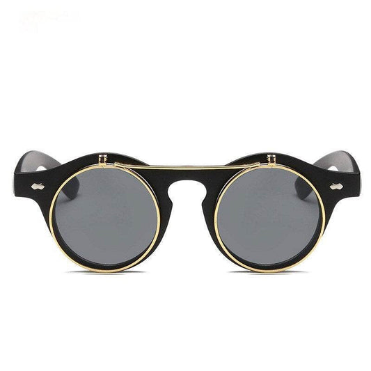 Sunglasses Women Brand Designer Retro Round Steampunk Steam Punk Metal Flip Cover Fashion Sun Glasses