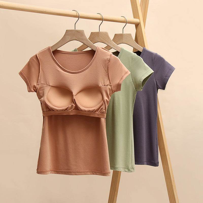 Short-sleeved T-shirt With Chest Pad Bra Home Wear