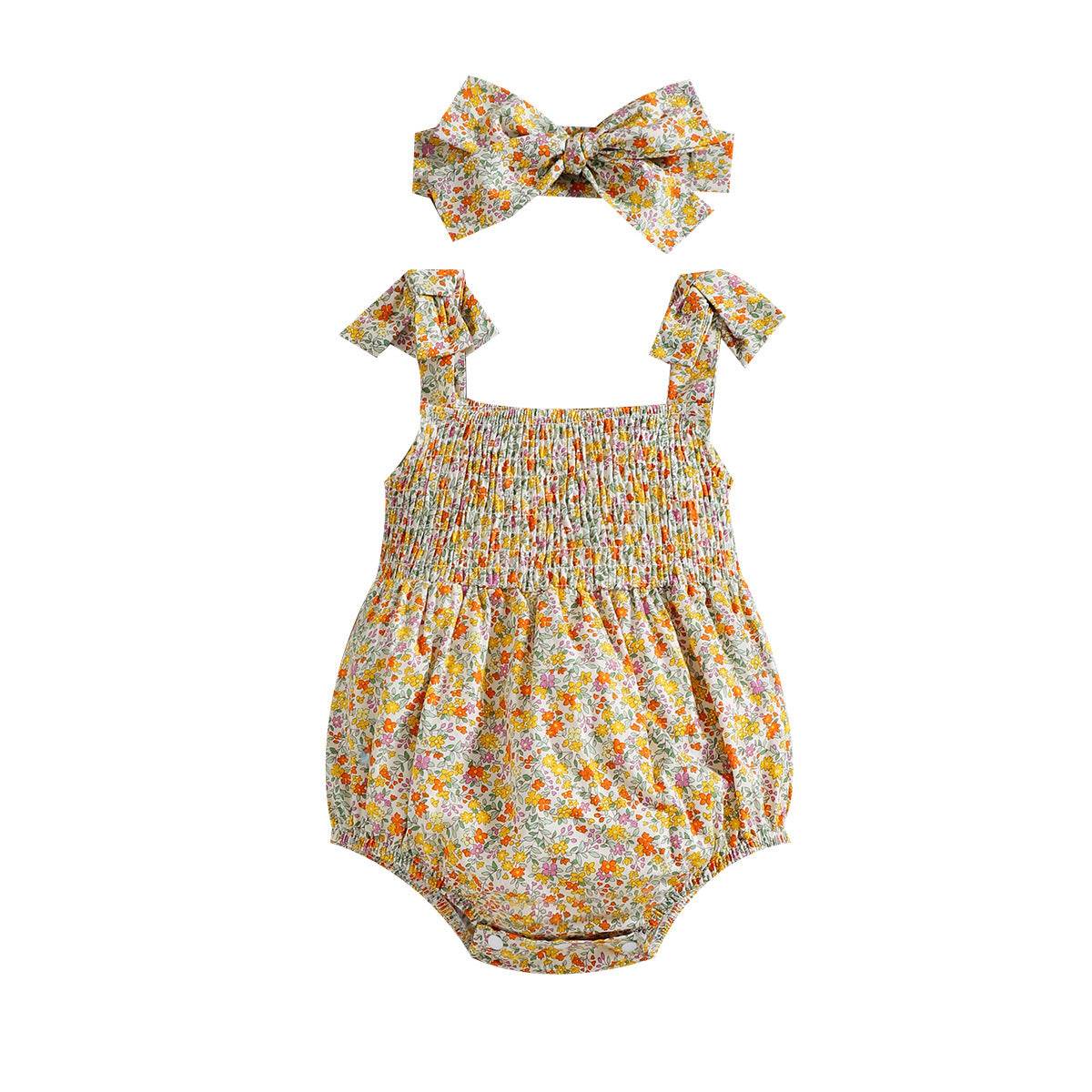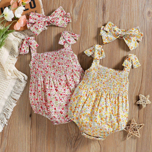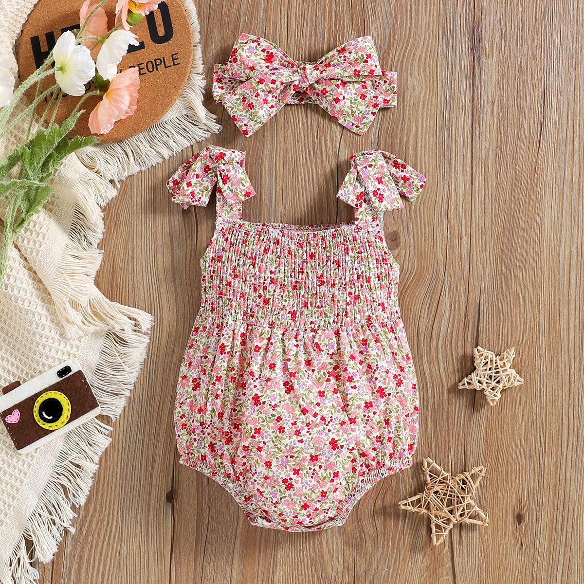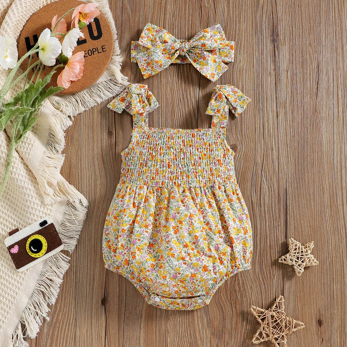 Floral Strap Smocking One-piece Romper Baby Girl Rompers