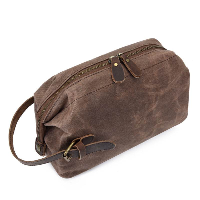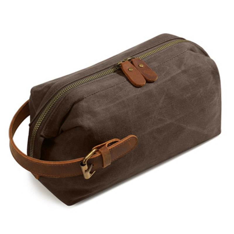 Mens Travel Toiletry Bag Canvas Leather Cosmetic Makeup Organizer Portable Shaving Kits