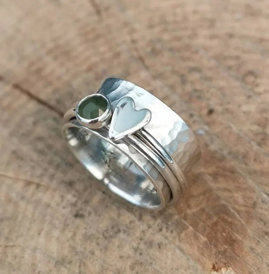 Fashion Heavy Industry Wide Face Creative Heart-shaped Bracelet Retro Design Ring