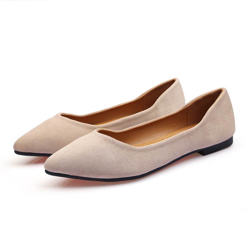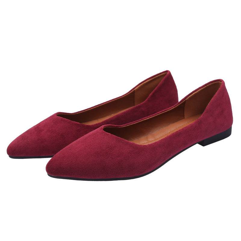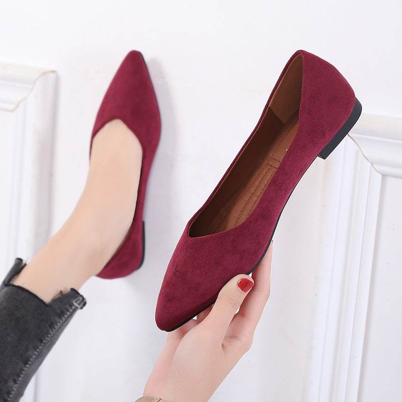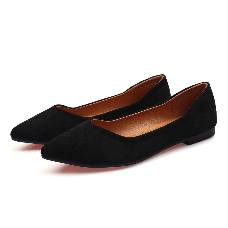 Black Flat Shoes With Suede Pointed Toe - Mubimart