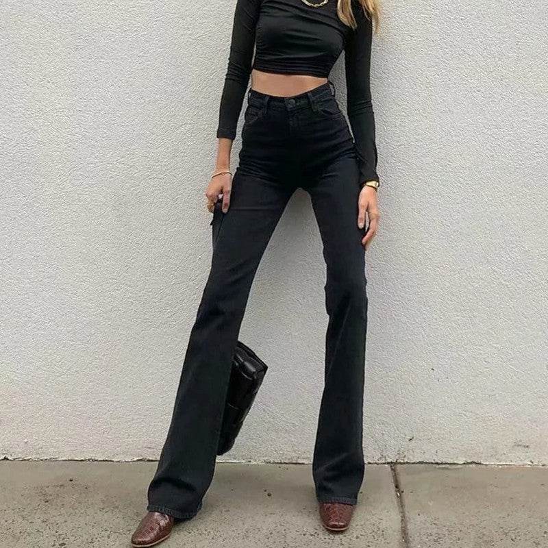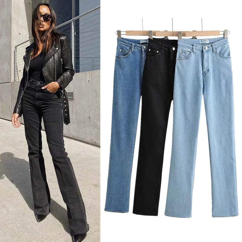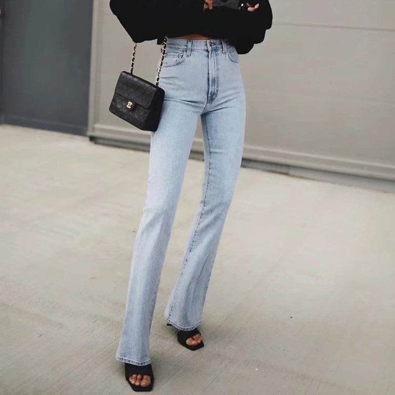 European And American Ins Retro Slim Micro Flare Jeans Women