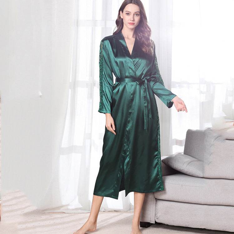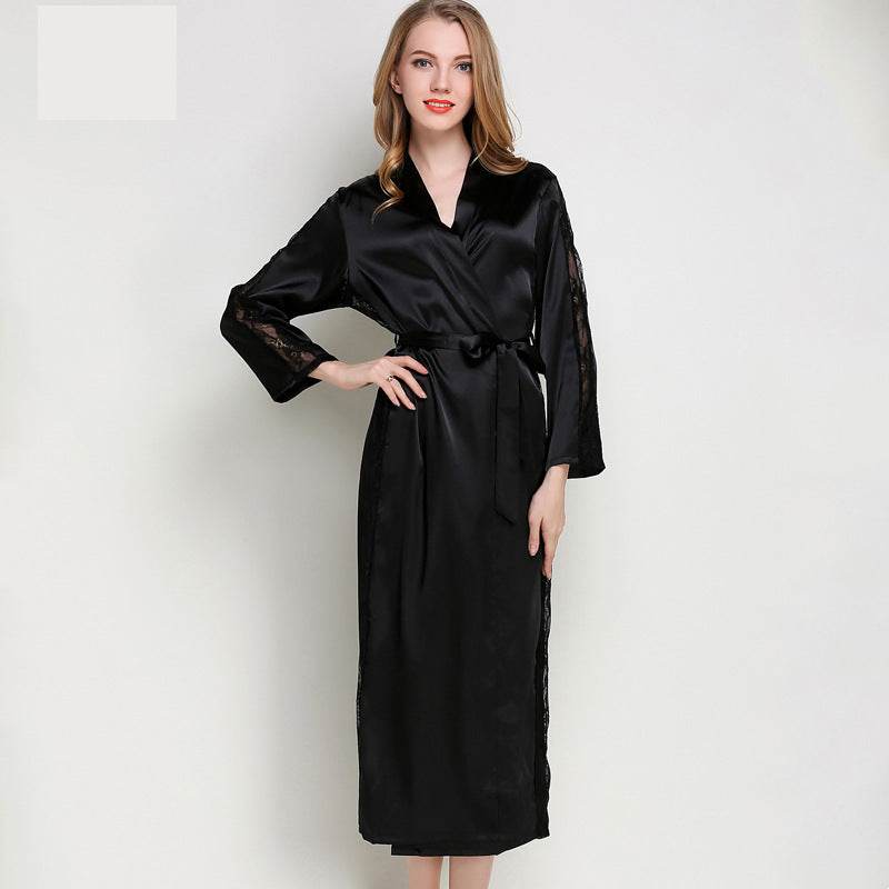 Fashion Ladies Pajamas Imitation Silk Nightgown Lace Sexy Long Nightgown Bathrobe