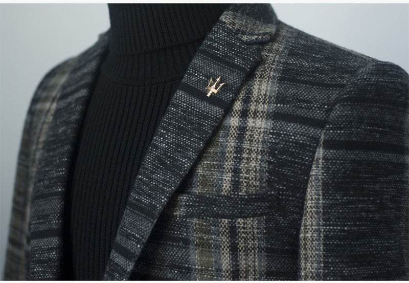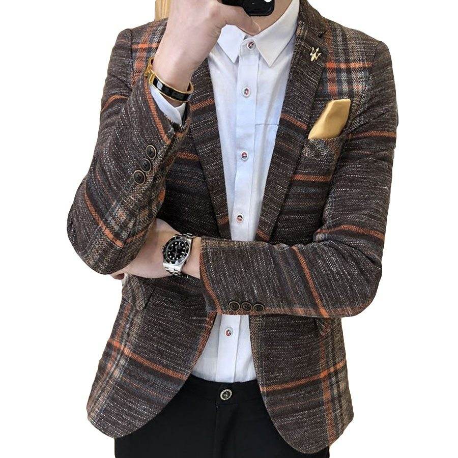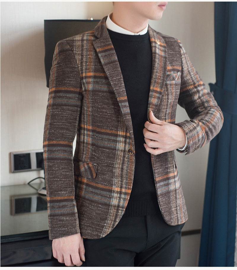 Men Blazer Slim Fit Designs Male Plaid Blazer