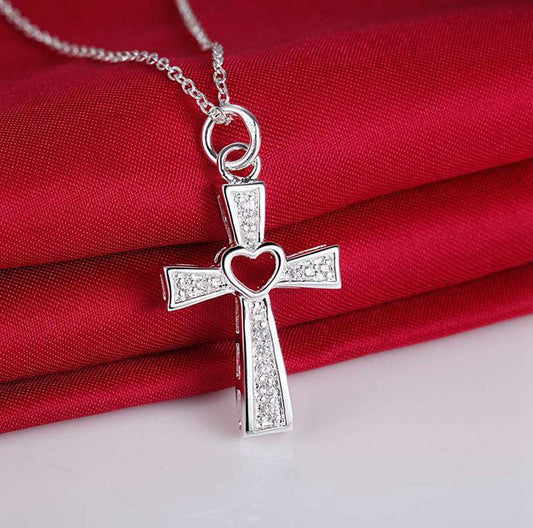925 Sterling Silver Necklace Religious Necklace Love Heart Fashion Cross Pendants Necklaces Sweet Jewelry For Women GNX13884
