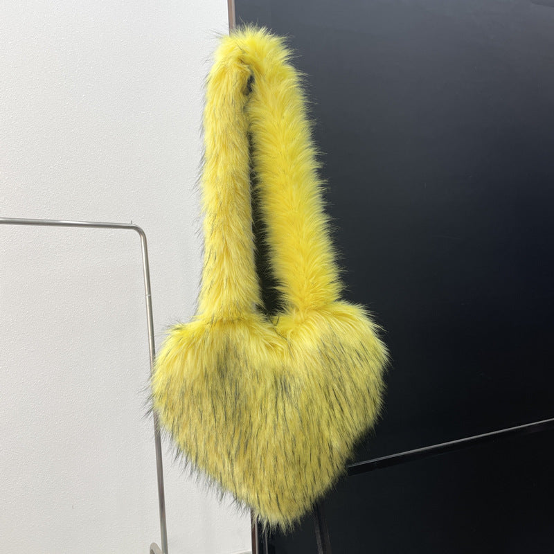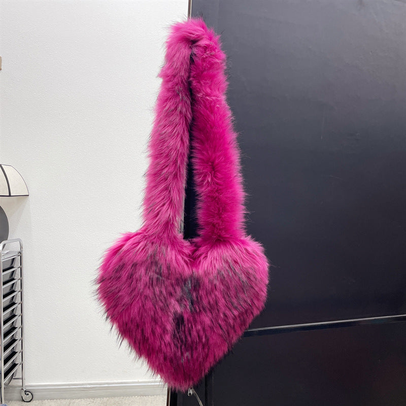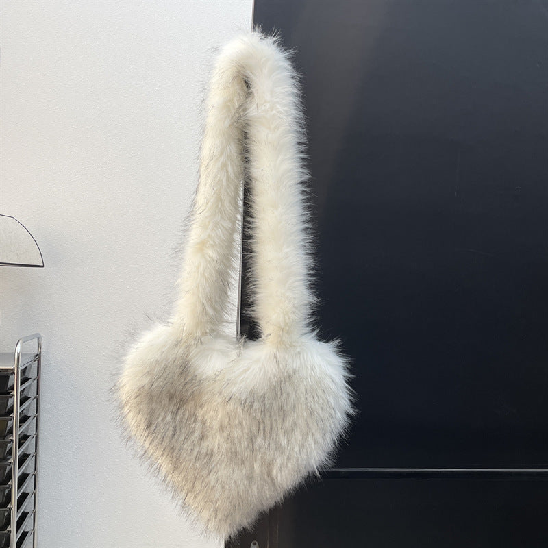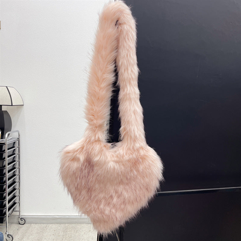 Winter Fleece Shoulder Bags Women Heart Shape Crossbody Bag Plush Large Capacity Love Bag