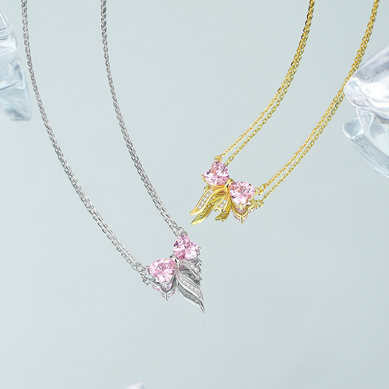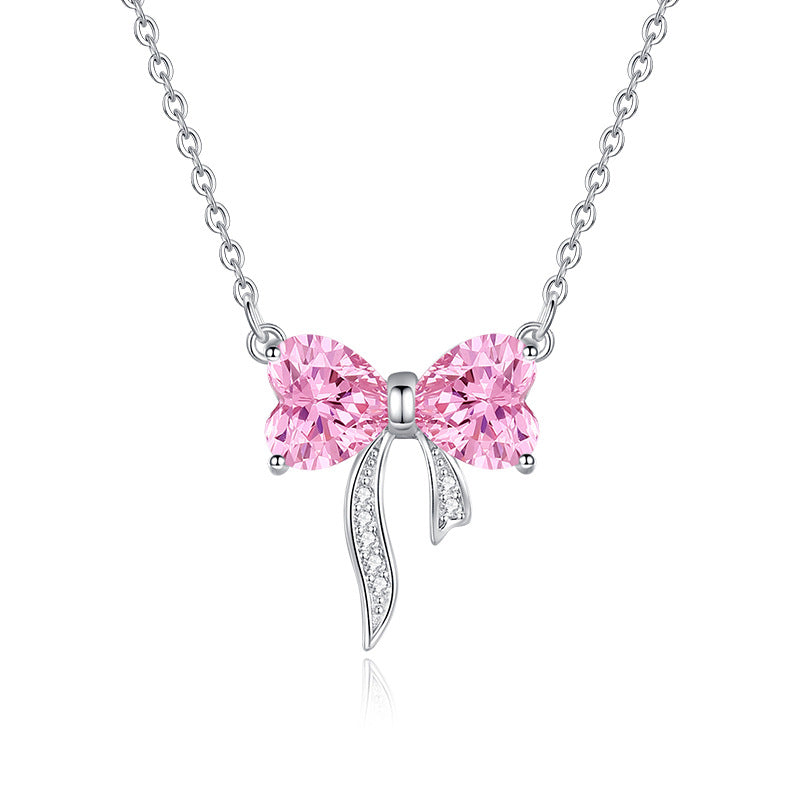 Women's Bow Zircon Necklace S925 Sterling Silver Clavicle Chain
