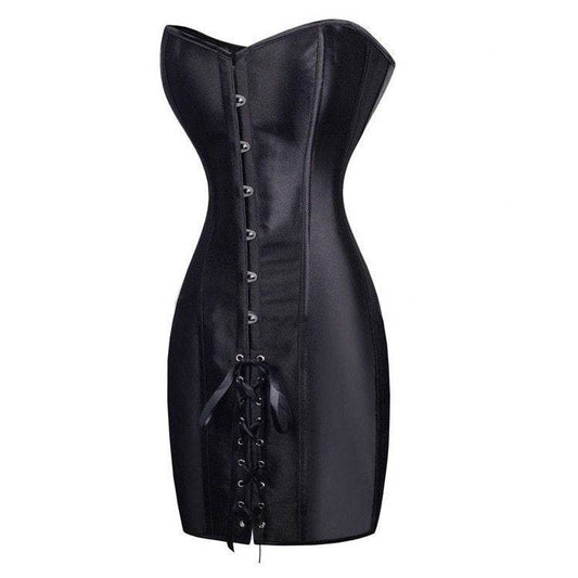 Special Long Waist Corsets and Bustiers Gothic Clothing Black Faux Leather Corset Dress Hot Spiked Waist Shaper Corset - Mubimart