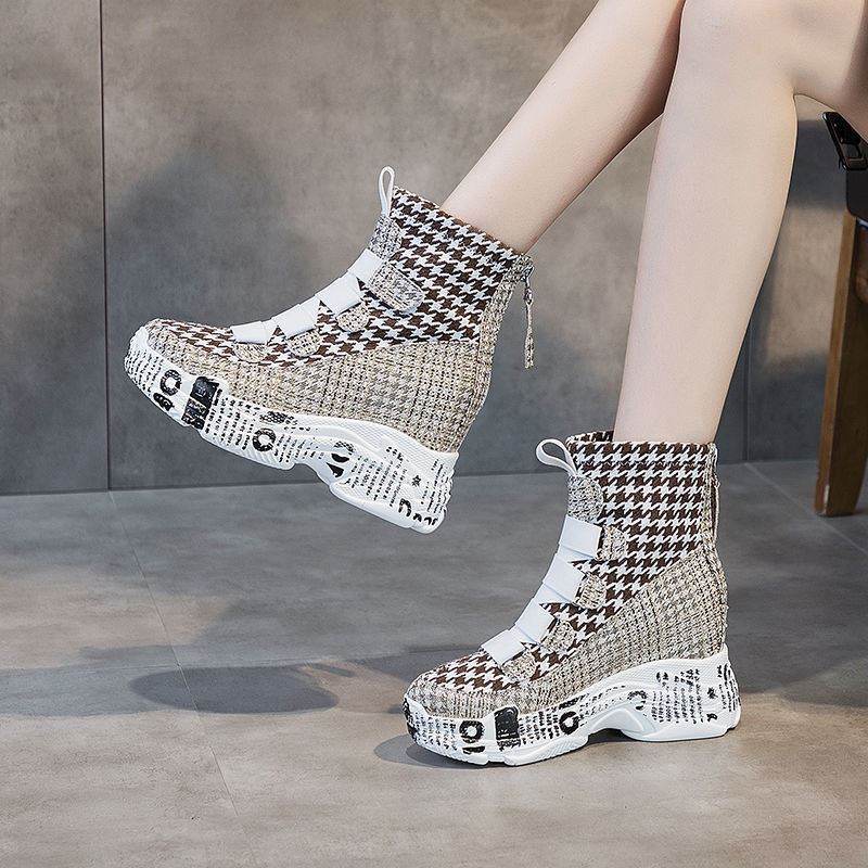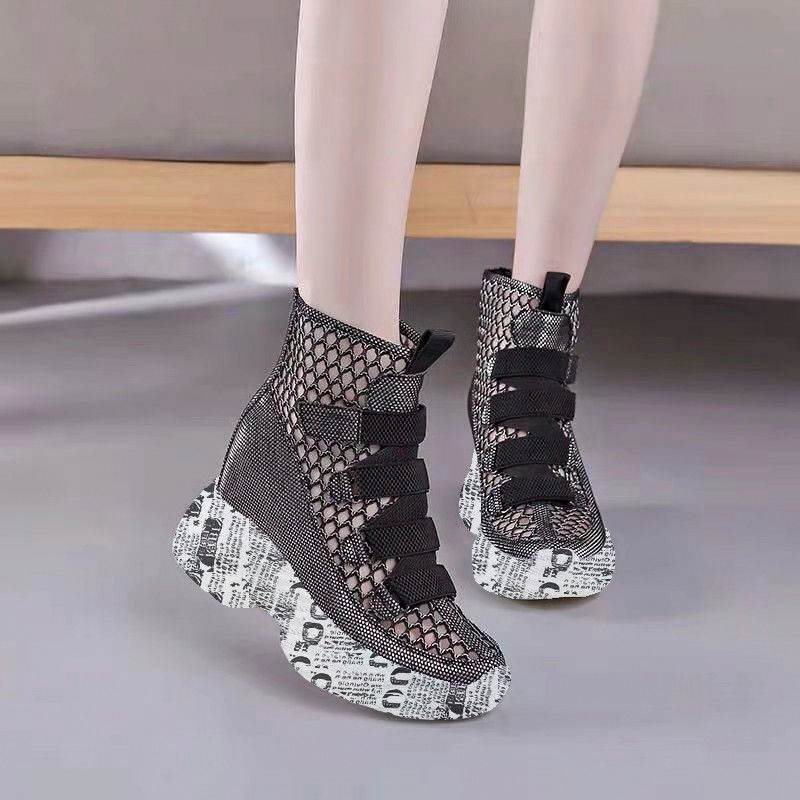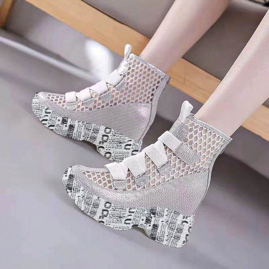 Mesh Hollowed Out Boots Breathable Thick Soled Wedge Heels Inside Heightening Women's Cool Boots