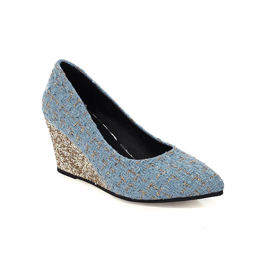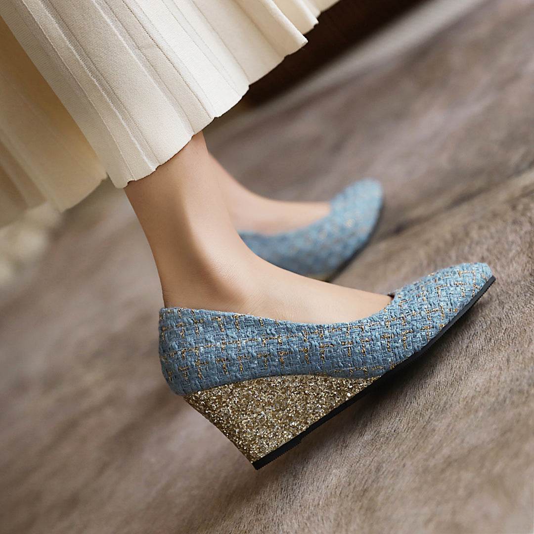 Wedge Heel Shiny Cloth Plaid Simple Fashion High Heels