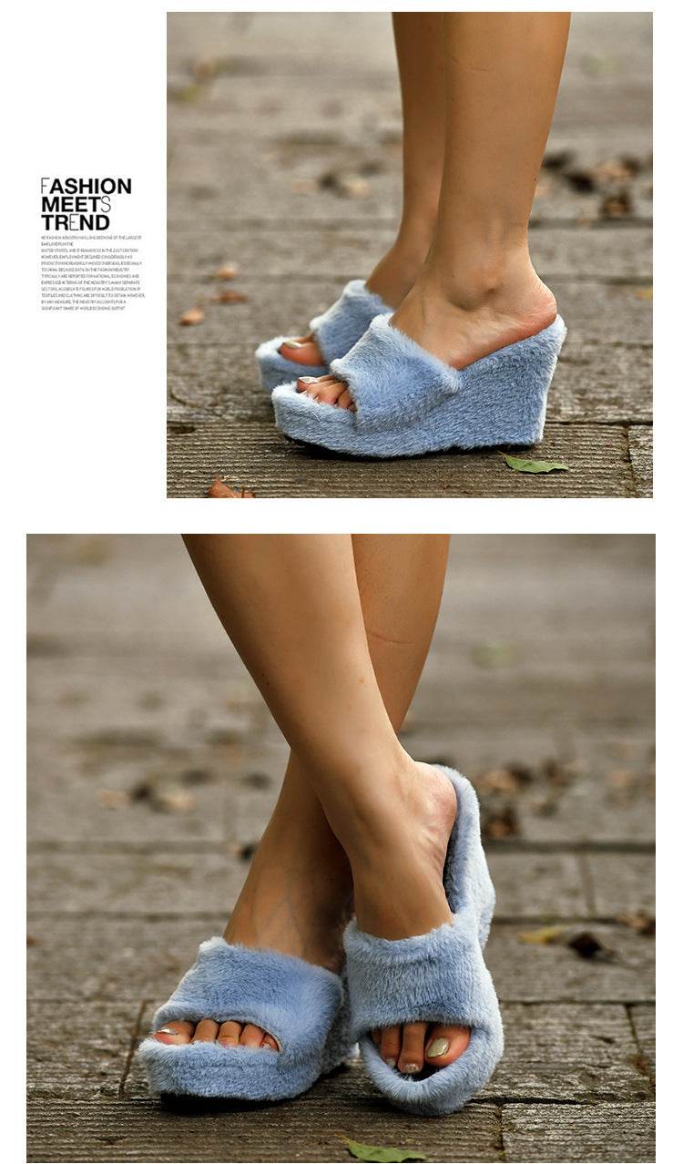 Wedge Heel Slippers Ladies High Heel Muffin Drag