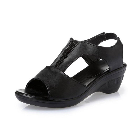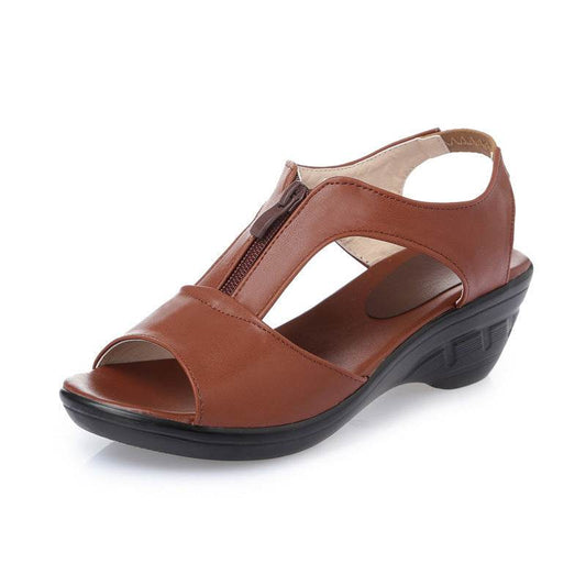 Wedge heel hollow female sandals mid-heel mother sandals - Mubimart