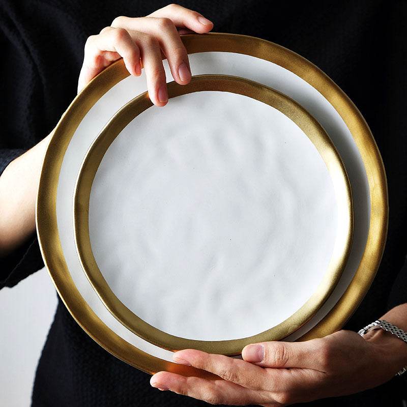 Plate Black And White Gold Ceramic Rice Noodle Bowl Small Dish