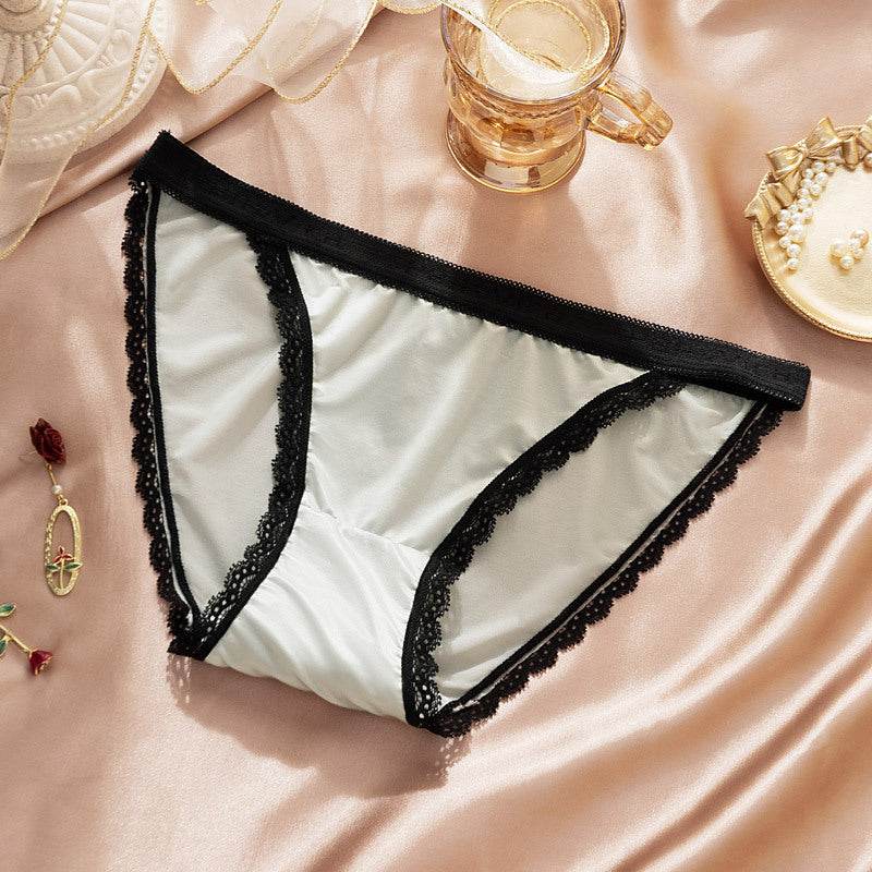Ultra-thin Ice Silk Briefs Lace Edge Fashion Letter Belt Wisps Empty Women