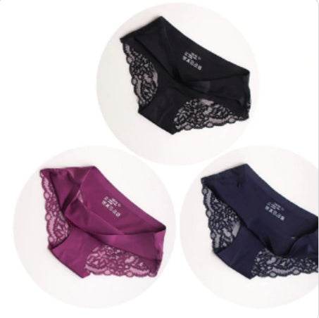 Ice Silk Underwear For Women Traceless Lace Pure Cotton Crotch Briefs - Mubimart