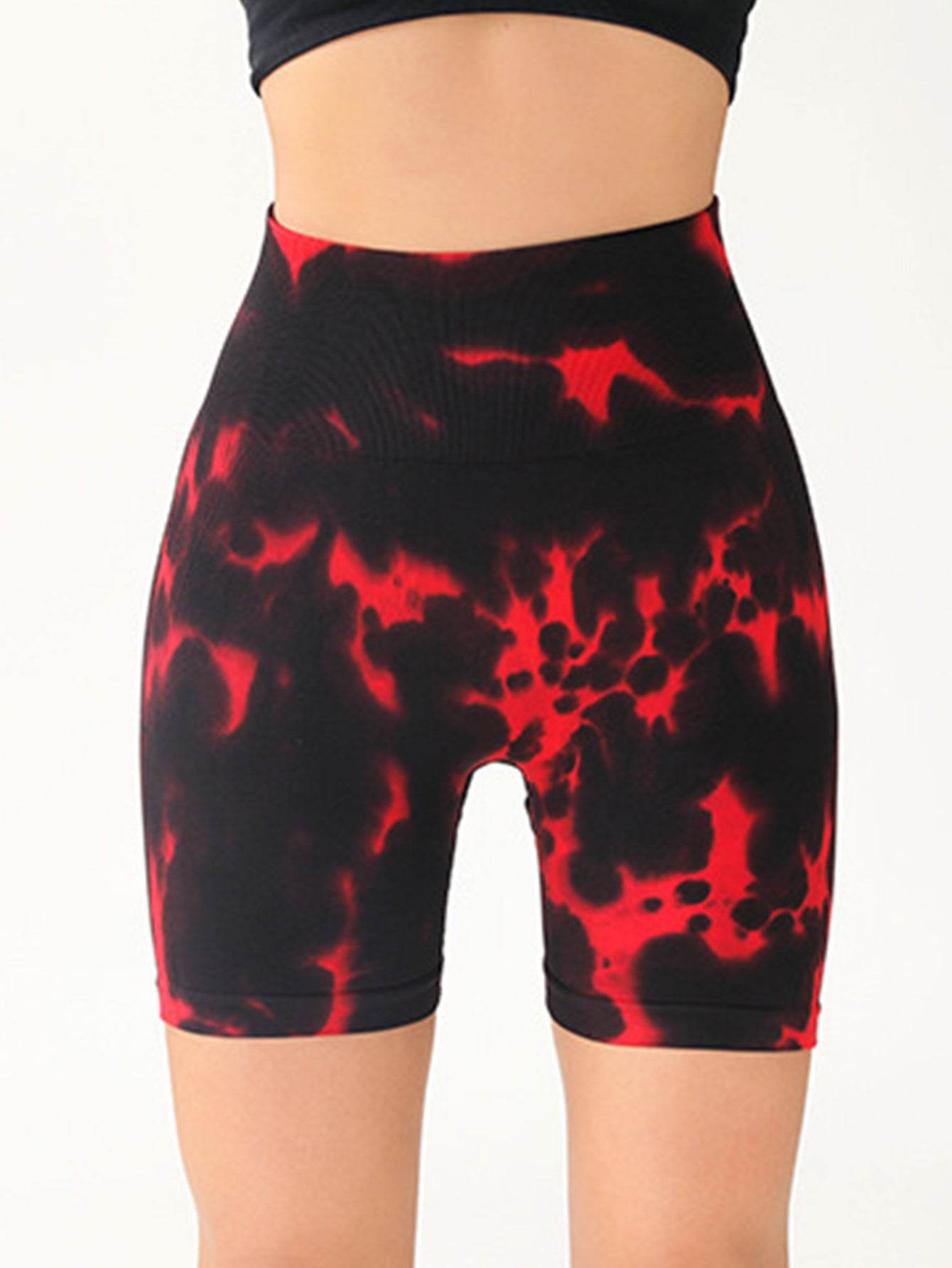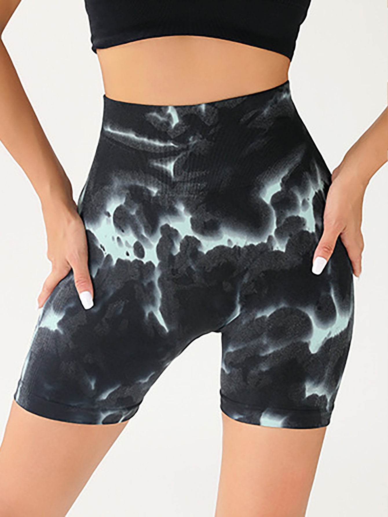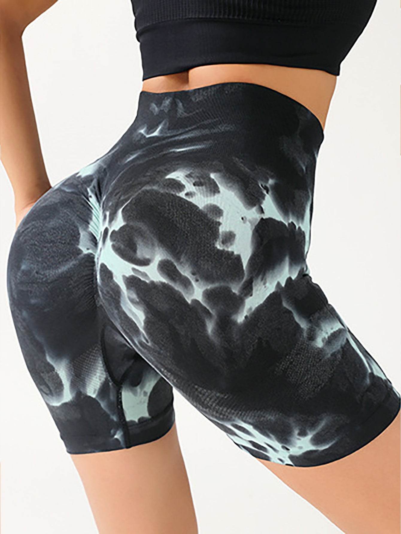 High Waist Tummy Control Yoga Shorts For Women, Tie-Dye Ruched Booty Lifting Workout Fitness Shorts, Hip Lifting Sports Activewear, Gym Exercise Running Shorts - Mubimart