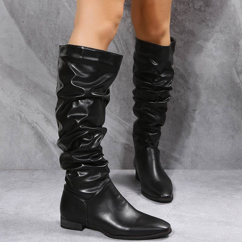Long Boots White Cowboy Boots Women Pointed Toe Shoes