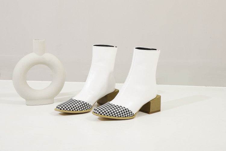 Plus Size British Short Boots Women Pointed Thick Heel Zipper Martin Boots Leather Boots Women